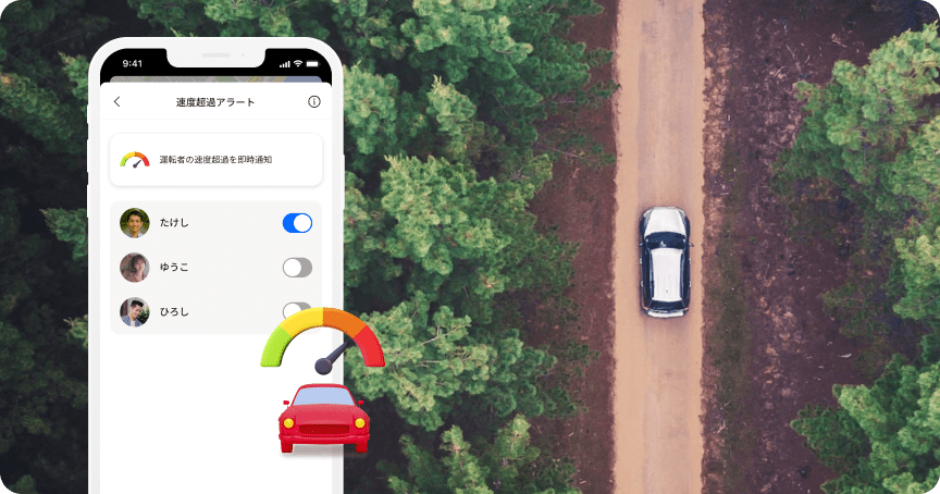 スピード超過警報:事前設定された速度を超過した時に通知を受け取る
