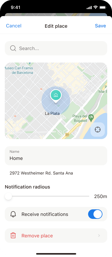Don’t worry about your family safety! Just register frequently visited locations and receive automatic notifications.