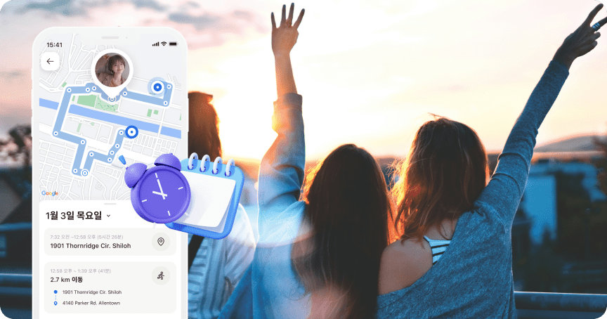 자녀가 어제 오후에 어디 있었는지 궁금하신가요? 스마트폰을 분실하셨나요? 업계 최장 1년간의 위치 기록을 확인해보세요. 최대 3개월 동안의 자세한 GPS 타임라인, 이동 경로, 정확한 시간 기록을 한눈에 볼 수 있습니다.