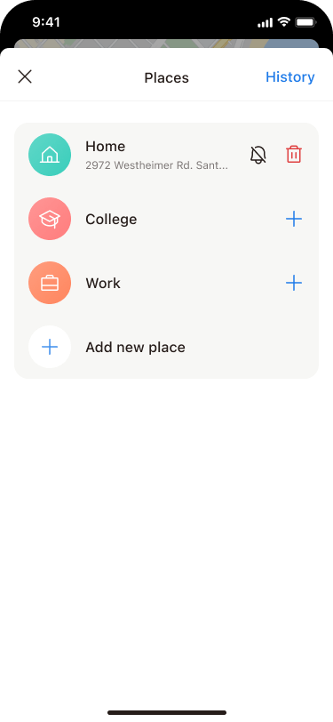 Уведомления о посещении места сообщают вам, когда друзья или родные приходят в определенное место или покидают его. Вы всегда можете добавить в список новые места, чтобы получать уведомления: