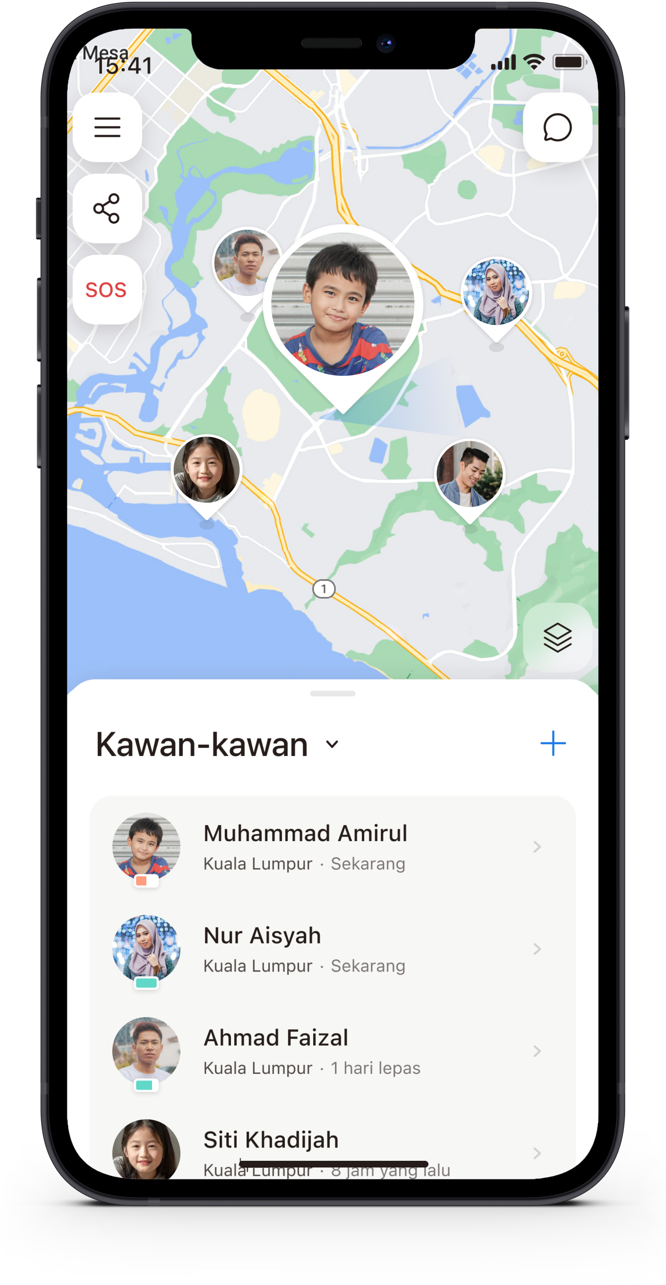 Pasang aplikasi pada peranti anda untuk mula berkongsi lokasi secara masa nyata.