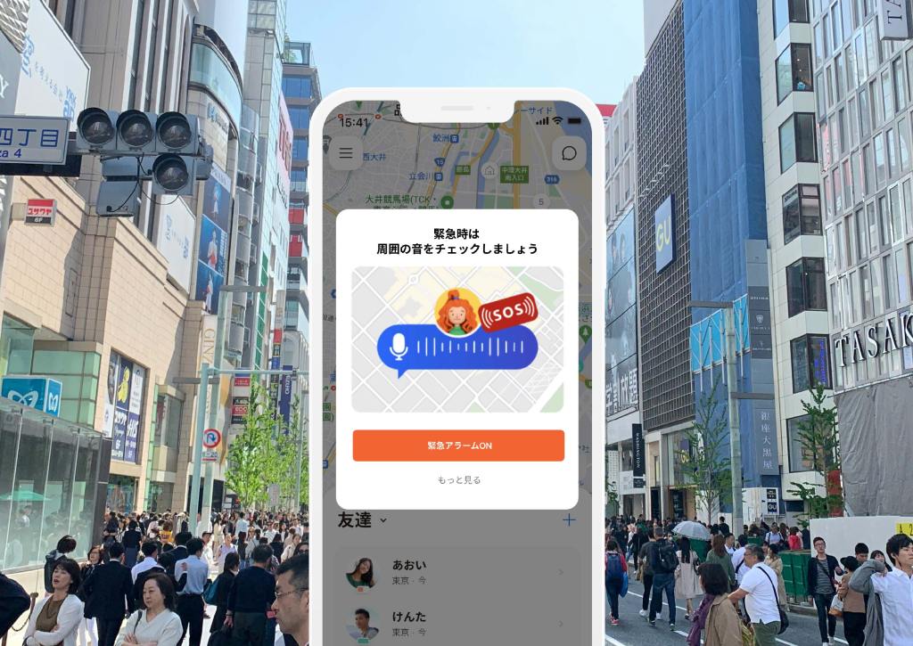 また、SOSアラートの送信時には10秒間のカウントダウン中に周囲の音を録音できるため、子どもが声を出せない状況においても保護者は状況を把握することが可能です。
