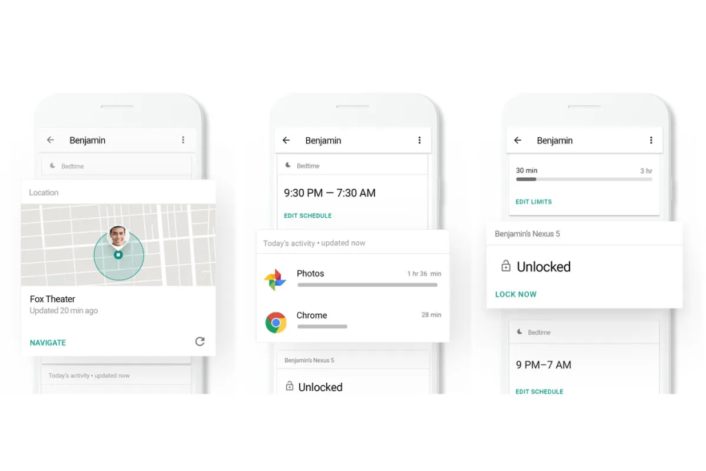「Family Link」是一款很棒的免費應用程式,可幫助家長監督孩子使用Android裝置的情況。有了「Family Link」,家長不僅能查看孩子在每個應用程式上花了多少時間,還能封鎖含有不當內容的應用程式不讓孩子使用、或是限制孩子整體的螢幕使用時間。與「愛分享」一樣,「Family Link」也有提供追蹤定位的功能、但只會顯示最新探測到的位置。